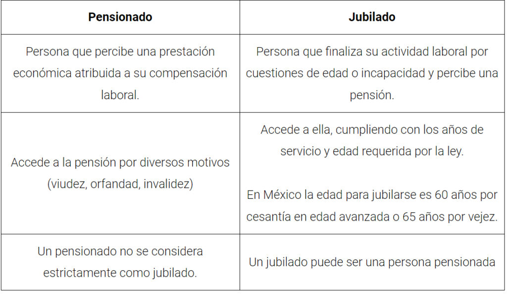 Algunas de las principales diferencias entre ser jubilado y ser retirado son las siguientes: